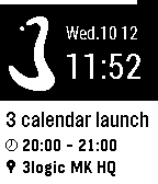 Don’t forget next event: look at your Pebble! If you feel it vibrate and you see flashing, then it's time for the next event! Get your Google Calendar in 3Calendar, a Pebble app synchronizes all or a selection of calendars. Just a glance to your smartwatch to discover your next event or scroll your appointments of the day, complete of all details, with a stylish interface in black and white.