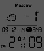 Simple watchface with two screen, date and time, 7-segment style digits, weather condition, battery and bluetooth state. Adjustable features: - two screen, standby and info; - change screen with accelerometer tap; - normal and invert mode; - auto standby; - weather condition by openweathermap.org city ID; - battery and bluetooth state icon; - vibe bluetooth on/off, hourly.