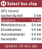 - Select between automatic or manual bus stop selection ('*' next to bus stop name on main screen indicates manual selection)