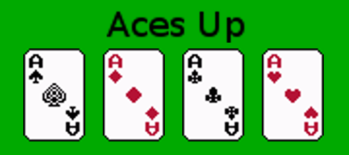 Aces Up is a solitaire card game for Pebble. The simple gameplay makes the game perfect on the Pebble. How to play: Aces are high. Press the deck to deal 4 new cards. If there are two cards of the same suit, you can discard the lowest-value on with the select button. If there is an empty spot, you may move another card to the spot by selecting the card and then the empty spot. Win by ending up with the 4 aces left. Enjoy!