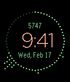 This watchface uses Pebble Health data to show the time along with a visual display of how active you are every minute of the hour. It is inspired by a Fitbit watchface. Includes the following options: - show date - show step count / sleep time (If selected, sleep time will show only when you want it to. Trust me.) - color schemes - show weather dot (Uses location - location is not used unless this is selected. Dot is shown at the minute mark that corresponds to current temperature.)
