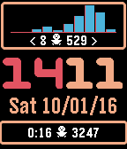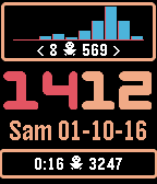 Clean watchface with on top a bar chart representing activity (steps). The bar chart represents the past 2 hours and is updated every minute. 12/24 hour support (double digit), languages English, Dutch, French, Spanish, German and Italian. Colors for every element are configurable. European and American date presentation. BT warning buzz (can be switched off) with color change of minute display. Configurable battery level warning. Under the graph the minimum and maximum calculated value is shown. Each bar represents 12 minutes. Below the time and date a summary is shown. It shows the active time from start of day and the walked steps since start of day. The price is just $1,99 and there is a free trial for 24 hours. This watchface will also run on Pebble 2/Pebble Time 2 and features a heartrate monitor in the bar chart.
