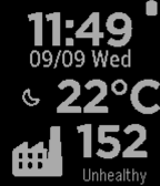 This watchface shows Air Quality Index for you location. Air Quality Index is downloaded from a automated measurement device nearest to you and it is calculated on the basis of dust, carbon monoxide, nitrogen dioxide, sulphurt dioxide and humidity levels. Lower Air Quality Index means better air to breathe! Air Quality Index is updates several times a day. The watchface also shows current weather, date&time and battery status.