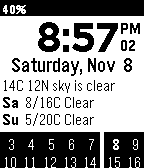 All Info As Text watch face delivers the time, date, current weather, today's / tomorrow's forecast, and a 2 week calendar. Config options include: week format temperature units wind speed units seconds or week # If in 12HR mode, the watch will display seconds for 3 minutes with a watch bump. Or that field can be configured to show the week #. Location services must be enabled for WX.