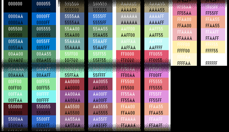 This app can be found in the list of 64 colors that can be displayed is Pebble Time. Since the color of the emulator and Pebble Time is different, you can use when you want to try. It will scroll the screen with Up / Down button. Number represents a hexadecimal RGB.