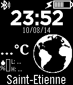 Simple, sobre, juste ce qu'il faut. Alterne toutes les minutes entre la date du jour et la ville. La météo est mise à jour toutes les heures pour conserver une très bonne autonomie. Possibilité d'inverser les couleurs, choix d'utiliser le GPS pour la météo ou de définir une ville précise. Réglage de l'intervalle d'actualisation météo Choix possible entre les degrés Celsius ou Fahrenheit.