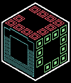 Analog style watch displayed on two faces of a cube with battery level and bluetooth connectivity shown on the third (left hand) face. Hours and 5-minutes appear as blank cells arranged around the top and right faces of the cube, respectively, in analog fashion starting with 0 in the highest cell. 4 additional minutes are shown with the cells in the middle of the right face disappearing. The middle large cell on the top face is the PM indicator (not present in the morning). The battery level decreases every 10% drop. 3 screenshots: (1) 8:10PM, battery 100%, bluetooth connected (2) 3:46PM, battery 10%, bluetooth connected (3) 11:34AM, battery 70%, no bluetooth The last two images are not screenshots, but show how to read the time. Design created by Peter Fletcher and orinigally appeared onthe Tokyoflash Design Studio. It is published with the designer's permission, and sanctioned by Tokyoflash. The original design can be found here: http://blog.tokyoflash.com/2013/03/13/anacube-a-geometric-analogue-style-lcd-watch/