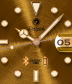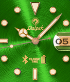 Stylish and realistic watchface created by hand. Inspired by the classic Rollex and adapted to a square face. It detects when bluetooth is disconnected and vibrates. battery level is displayed. Choose between blue,black,red,green and gold colored faces. Option to disable Seconds Hand.