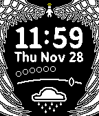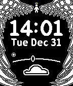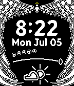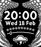 Embrace your inner angel with Angelic Ascent, with the following features: * Time * Date * Weather * Temperature * Shown as a range from very cold (30F) to very hot(100F), with comfortable (65F) in the middle * Battery * Bluetooth connection * When your connection with your entity breaks, they will disappear...