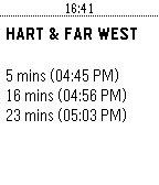 This application will display the estimated arrival times of the next three buses at bus stops in Austin, Texas. Add any number of StopIDs in order to be able to view upcoming bus arrivals. While focused on a stop, Up/Down will cycle between saved stops. Select enters a menu of your saved StopIDs, where you can also save additional StopIDs. A "long press" on a stop in the menu will allow you to delete it.