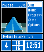 Explore a dungeon as you go about your day. Exploring is randomized and time based, so you only act when an event is triggered. Encounter random monsters and chests. Survive, and you can advance deeper into the dungeon. Controls: Use the up, down, and select buttons to activate the menu options on the right of the screen. The back button will exit sub-menus, and exit the app when you are at the main adventure screen. If you are in battle and need to exit in a hurry, holding the back button will force exit the game. Features: * Support for Pebble, Pebble Time, Pebble Time Round, and Pebble 2. * Automatically saves progress on exiting, including the state of combat in the case of a force exit. * Optional vibration when an event happens. * Optional fast mode to speed up events. It does not change the relative frequency of event types, but makes the game faster if you have some dedicated play time. * Optional background app to explore while you use other apps and watchfaces. The background app can interrupt you when an event happens or save it for the next time you want to play. * Option to revert to original graphics Full code is available on GitHub. Additional Contributors: * BlackLamb * Belphemur