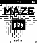 PebbleMaze is a "virtual tabletop" marble maze where you tilt in the direction you want to go to reach your goal. The maze is uniquely procedurally generated each game. The up and down buttons change difficulty.