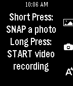 Pebble Camera take a PHOTO or VIDEO on your phone through your Pebble! With LIVE PREVIEW on Pebble! ⢠Camera facing (Front or Back); ⢠Photo / Video resolution; ⢠Flash mode; ⢠Self-timer; ⢠Quality preview. You can also use this app as a Spy Camera, it can take photos or videos without any sound or light! Put your phone somewhere, no further than 10 meters from Pebble.
