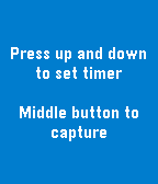 OW Camera Remote is a very simple app that allows you to take pictures remotely from your Android Smartphone. Set a timer amount, strike a pose and have your pic taken. Controls: Up/Down: Set Timer Amount (Max 30 seconds) Middle: Start the Timer Capture / Cancel in progress Timer Requires using the Companion Camera App, OW Camera for Pebble.