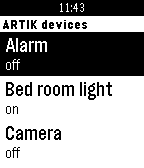 Samsung ARTIK Cloud WatchApp helps you remote control your devices registered on the ARTIK Cloud platform. To authenticate on the ARTIK Cloud platform, go to ARTIK Cloud settings in your Pebble Phone application.