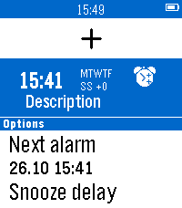 - Alarms for each day of the week - Smart Alarm attempts to wake you if it detects you stirring shortly before the alarm time, which is the Monitor Period (doesn't interfere with background activity apps) - All settings are in-app (Down button on main screen) - Alarm vibration starts gentle and gets longer and longer to gradually wake you and this can be adjusted with the Vibration Pattern setting - Alarm will vibrate for just over a minute and will then auto-snooze to save battery - Doesn't need to be manually started for the alarms to work (set and forget) - While Alarm is vibrating, a single click on any button snoozes the alarm. 2 quick clicks are required by to turn off the alarm to reduce the chance of accidentally turning it off - Change the 'Stop Alarm' setting to 'Konami Code' to show a random sequence of buttons to turn off the alarm to help really make sure you are awake - Dynamic snooze halves the initial snooze time on each snooze until it reaches 3 minutes - for those of us with a habit of hitting snooze repeatedly ;) - Can temporarily disable all alarms (Single Up button click on main screen) - 'Easy Light' - hold your Pebble vertically to turn on the backlight while the alarm is vibrating/snoozing (no need to shake your wrist!). Can be turned off. - Skip alarms by holding Up on the main screen and choose a date to skip until (alarms restart on that date.) Disabling & enabling alarms, or going into the settings resets skips - DST Check sets the day of the week on which it checks if your location has switched to/from Daylight Savings Time