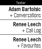 Texter allows you to create a tree of messages which is then sent to your Pebble and allows you to shoot off quick replies right from your watch. Now also supports typing messages on your Pebble from scratch. Input based on Tertiary Text by VGMoose Navigation ---------------- The app uses a navigation system whereby the action in bold is performed on a single click and the action not in bold is performed on a long press of the key. The back button returns you to the previous list. How to Use ---------------- When the app is launched you are given the option to message either the last person who you had a conversation with or the first person in your favourite list. A long press on either takes you to a list of 6. You can then navigate the tree of messages which you can customise on the companion app. Anything prefixed with a + means it is a sub menu. Anything else is a message that when you click will send the relevant message to the person you selected. Text Input ----------------- While in text input mode the inputs are changes to: * Single button press take you through the letter tree * Hold up to switch to caps and symbols * Hold down to go back to previous tree level * Hold select to send the message --- This app is open source: https://github.com/tocsick/texter Tertiary Text: https://github.com/vgmoose/tertiary_text