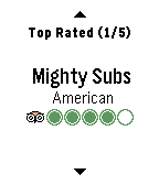 Millions of restaurants and traveler reviews available right on your wrist. TripAdvisor for Pebble makes it easy to find great places to eat, wherever you go. Français Des millions de restaurants et les avis de voyageurs disponibles directement sur votre poignet. Avec TripAdvisor pour Pebble, il est facile de trouver des endroits pour manger, où que vous alliez. Deutsch Millionen von Restaurants und Bewertungen direkt auf Ihrem Handgelenk. TripAdvisor für Pebble macht es einfach, die großen Plätze zu essen zu finden, wohin Sie gehen. Español Millones de restaurantes y opiniones de viajeros disponibles en tu muñeca. TripAdvisor para Pebble te permite buscar fácilmente lugares fantásticos para comer y cosas entretenidas que ver, estés donde estés. 中国(简体)- Chinese (Simplified) 数以百万计的餐馆和旅游信息手腕上的即时可用。该浏览我们的卵石可以很容易地找到伟大的地方吃,无论你走到哪里。 中國(繁體)- Chinese (Traditional) 數以百萬計的餐館和旅遊信息手腕上的即時可用。該瀏覽我們的卵石可以很容易地找到偉大的地方吃,無論你走到哪裡。 ================================ UPDATES ================================ Version 2.0 New, streamlined UI - to help you find the best nearby restaurant as easily as possible. -------------------------------------------------- Version 1.7 Available in all languages supported by Pebble! Give it a <3 if you love TripAdvisor!