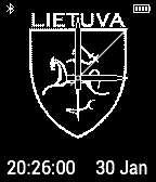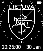 A stylized version of Vytis with the word Lietuva (Lithuania) above the Vytis. Includes both Analog and Digital time as well as the date. Shows your battery and bluetooth status. The Vytis, which means "hero", is a knight mounted on a charging horse. Its intent was to not only honor the Lithuanian nobility, but also the common Lithuanian soldier.