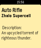 Destiny tracker for up to date information on your characters, including: Power Level, Grimoire Score, Vanguard/Crucible/Cryptarch and Faction levels and progression, Primary and Secondary stats. Please note: this app is written in Pebble.JS and therefore may have small delays in loading information.