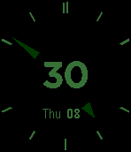 Analog watchface with date. Number in the middle is the percent left of the day.