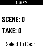 Basic clapperboard displays takes and scenes Don't worry about exiting the watchapp because Clapperboard saves your scenes and takes Instructions: -The Up Button increases the number of scenes -The Down Button increases the number of takes -The Select Button clears both the scenes and the takes