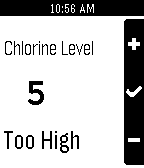 Easy to use chlorine leveler for your pool Just enter the chlorine level of your pool and hit select to see if your chlorine level is too high or low