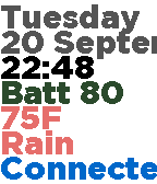 + Day and date (TUE, 06 SEP)