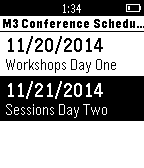 This application will allow the user to see details for sessions for various IT conferences. Current release only shows upcoming M3 conference in Columbus. Details shown are times, titles, speaker and abstracts. App is V1.0