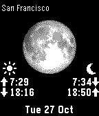 Moon Calendar Watch provides quick and easy access to Moon Phases and times of Sunrise, Sunset, Moonrise and Moonset. The app determines your GPS location and calculates the precise Moon and Sun data at your location. Click Up / Down for Moon and Sun data of the next day. Double click Down to play an animation of the Moon Phase Calendar to get a quick overview. This Pebble app can be used without connection to your phone. But you should run the phone app Moon Calendar Watch (Android or iPhone) once per week to update the Moon data on your watch.
