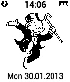Watchface featuring the Monopoly Man (aka Milburn Pennybags)