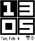 Simple watch face for SDK 2 - 12/24 hour format - respect Pebble setting - Day of the week, Month day number (Mon, Nov 25) - Battery level - Connection status - vibe after disconnected Wanna support me? Send me some bitcoins to 12uCyFPpR3vR6D1Up6gkyVXmg1yJpT8fPT
