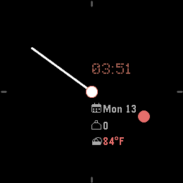 My personal favorite daily driver watch face. Styled after the Nothing CMF Analog face. Complications for date, steps, and local weather. Designed for the PT2 and PR2, may work with other, earlier models. I'm not a c dev, so lots of this was done with help from Claude, is what it is.