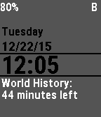 SchoolTime allows you to see the time left in each period. The configuration page allows you to change: - Class Names - Background Color - Bluetooth/Battery Visibility - Toggle Bluetooth Alarm This watchface currently only works with a specific school day. We are working on allowing custom time inputs in the config page. Until then, you are able to get the source from github and change the times manually.