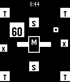 Time is running out as you move your wrist to maneuver your pebble piece into a randomly roaming countdown clock to score points. Advance to the next of 19 levels of increasing complexity, with your player rating improving with each successfully completed level. You'll have to avoid many hazards as you improve from "One Step Below Terrible" to "Greatest Person in World History".