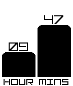 Time, in bar format. Left bar for hours (00-23 for 24 hour mode, 1-12 in 12 hour mode). Right bar for minutes 0-59.