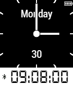 An unusual asymmetric mixed watchface with both digital and analog pointers. Features analog battery counter and Bluetooth on/off display.