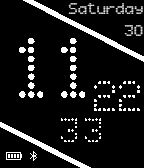 Simple Watchface with a sports classical look. Features vintage dot style font, seconds counter and date.