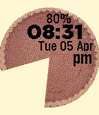 Now available for Pebble 2 and Pebble Time 2!! --------------------------------------------------------------------Version 2.0: NEW features added! - New-look configuration page - Improved look and visibility - Option to change date formats (UK & US style) - Option to vibrate when disconnected - Invert option now only shows in Classic Pebble and Pebble Steel - Date displays the language chosen in user settings ----------------------------------------------------------------- The most delicious watchface you've ever seen!! Watchface displays a pie, with the missing slice representing the current time in analogue format. The remaining piece shows the battery level, digital time, date and AM/PM respectively (if 12 hour). This display will show up in different places on the face depending on the time, showing as much detail as possible. The colours are not customisable, but when the Bluetooth is disconnected the pie disappears and only the time, battery and date will show (white on black). Vibrates with each connection status. In the configuration menu, the clock can only be updated every minute if desired to save battery. Also the screen invert can be turned on and off for Classic Pebble/Pebble Steel users. Enjoy, and send a heart if you do!!