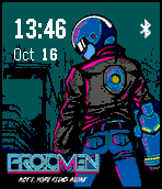 A watch face inspired by The Protomen. Features: -Supports 12 or 24 hour time with am/pm indicator. -Battery: Indicated by the light on his back. Goes from green to yellow to orange to red as the battery drains. -Bluetooth icon indicates connected to your phone via bluetooth Shows time and date with am/pm indicator.
