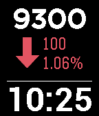 A big and clear watchface to show your current step count and whether you are more active than yesterday! Try to keep an up arrow throughout the whole day! It's fun and it's motivating to be active. For example, if you current step count is 9225 at 10:20pm today and your yesterday step count was 9137 at the same time yesterday, you would see an up arrow with a positive change of 88. However, once you stop being active, you may turn to a down arrow later in the day.