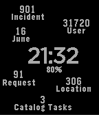 This watchface is able to connect to your ServiceNow instance. The watchface is able to show various statistics of your instance. It is fully configurable of what should be shown on the watchface within your ServiceNow instance. (UpdateSet needs to be applied on ServiceNow instance).