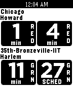 Shows the CTA train tracker data for two stops on your wrist. The times are refreshed every 30 seconds, or manually by pressing the select button. This version is for iOS users.