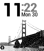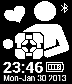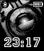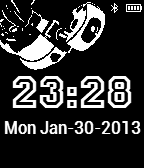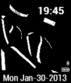 Easy to read time and date are shown with an attractive and simple wallpaper. Bluetooth connection and battery life is also shown.