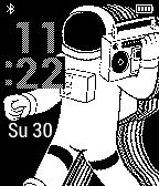 This watchface, though simple, packs in battery percentage (watch), Bluetooth, and short date. Oh, and a dancing astronaut.