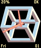 Impossible cube illusion. Digital, analog (or both) display. Second hand, outline hands, and BT warning buzz configurable. Battery friendly. Freebie!