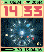 Planetarium. The solar system on your wrist! Gives an overview of the relative position of the 6 inner planets around the sun. Mercury, Venus, Earth (blue and larger for easy recognition, 3rd rock from the Sun), Mars, Jupiter and Saturn. With demo mode, shows the planets position in increments of five days per second from today on. New: Theme selection. Select your preferred theme background: Zodiac, Milky Way or Dark Stars. Sunrise and sunset time provided. BT connection warning with configurable buzz. 12/24 hour clock supported. $3.95 only!