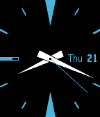 Watchface with BT con indicator, battery load, day and date. Second hand configurable. Hour hand red or same as minute hand. Freebie!
