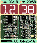 Skeleton watchface, aka open heart showing electronic components for the LCD display. Battery load display, BT connection warning. Sunrise and sunset display. 12-hour clock supported. Date format configurable. This is a paid watchface, price $3.95.
