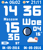 The ultimate World time clock for Pebble Time and Round. Configurable for 35+ cities/time zones, including half-hour offset zones. Online manual is provided (tap website link below). Supports 3 favorite time zones. Cycle through the 3 favorites with a flick of the wrist, no need to use the phone to switch between favorite timezones. Other features: Supports 12/24 hour local clock Weather icon with temperature in C or F (local weather) Moon phase display Battery load indicator Local sunrise and sunset time Days of week in English, Dutch, French, German, Italian, Spanish and Klingon. A-Grade energy friendly (extremely low battery usage). BT disconnect warning (temp goes red with optional vibration) Keeps track of DST and timezone date DST on dual time can be set to Automatic (US), On or Off. This watchface comes with a bonus Watch App. Completely configurable from your wrist! The app includes an on-board compass. Both watchface and app for just $4.95 ! Download the watch app separately from the Pebble Store.